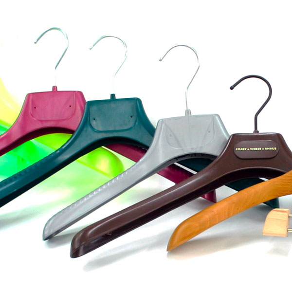 Portabiti in plastica nera o colorata, in legno naturale o vellutato con finitura antiscivolo, ideali per boutique e showroom.