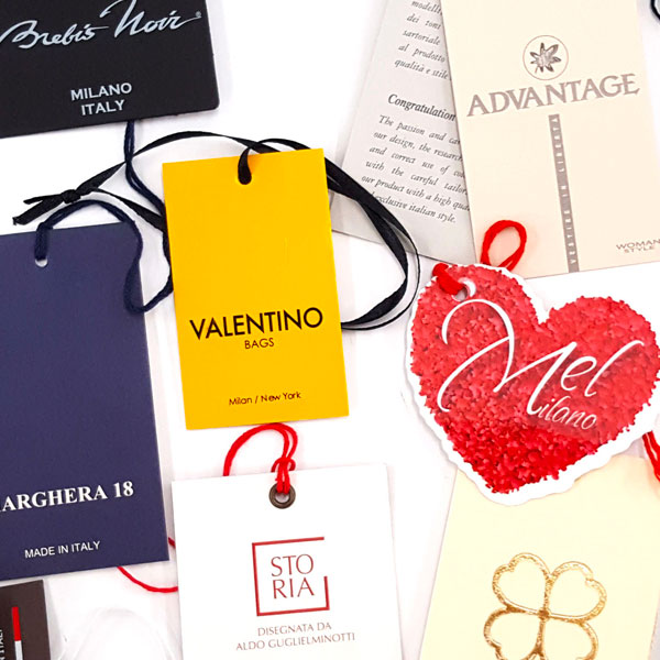 Cartellini semplici, a libro o a bustina, stampati in litografia, serigrafia, a caldo o in rilievo su cartoncino di diversi tipi e spessori.